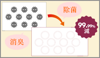 オリジンの除菌・消臭は空間の隅々まで行き渡るオゾンで、ウィルスや菌を除去するだけでなく、染み付いた嫌なニオイも同時に脱臭が行えます。